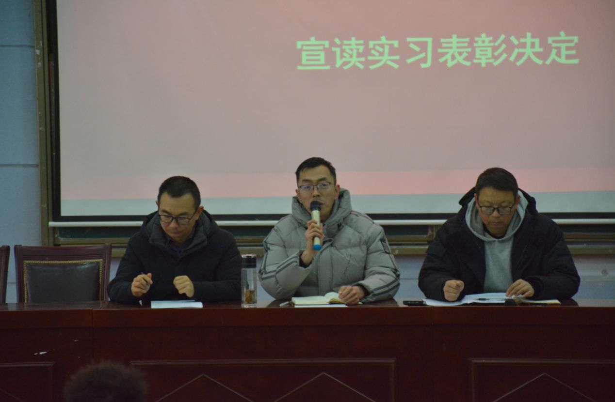 接着,优秀实习生代表上台进行交流发言。来自襄阳华侨城文旅发展有限公司奇幻度假区旅游分公司的陈金印、王鸿儒,湖北疯狂兔体育产业有限责任公司的王玉海,襄阳力扬体育文化发展有限公司的罗琦等四位同学,分别分享了自己的实习经历和感悟。他们的发言内容充实、情感真挚,赢得了在场师生的阵阵掌声。