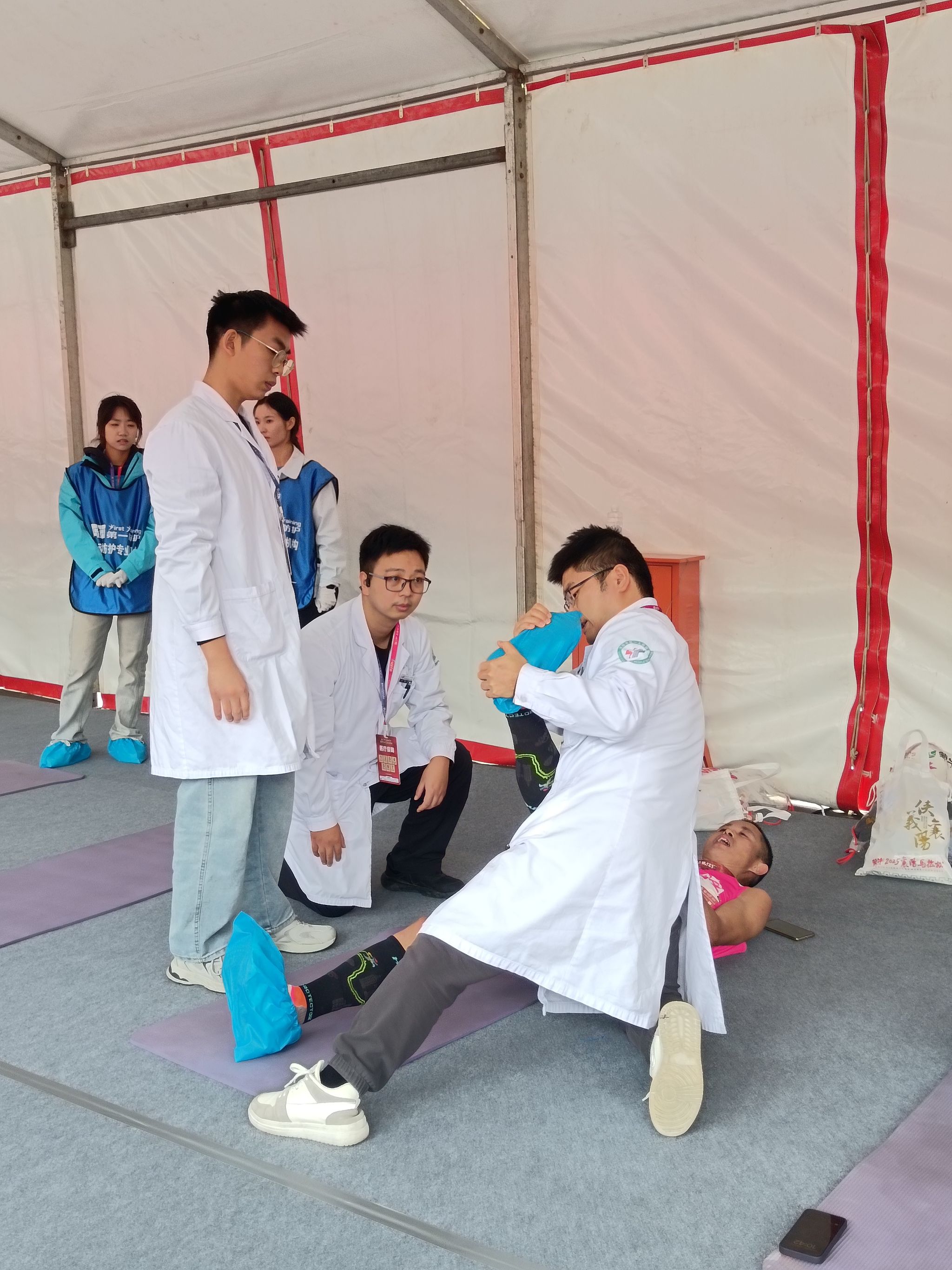 面对抽筋、拉伤等突发状况,同学们也沉着冷静,迅速协调医疗人员,在关键时刻提供及时帮助,展现出体育人特有的细致与可靠。