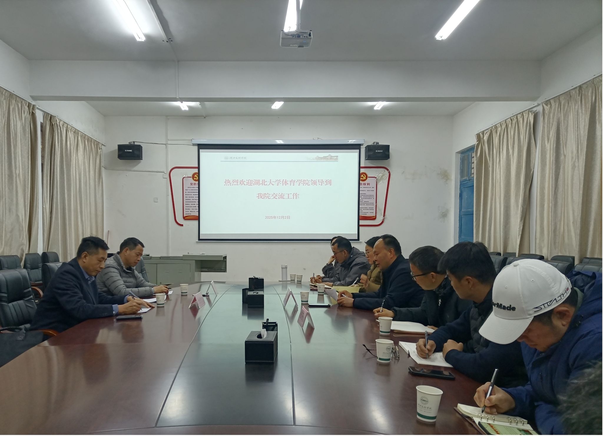 座谈会上,张华江对湖北大学同仁的到访表示热烈欢迎,并介绍了本院的发展历程。张春合就体育专业建设、教学创新竞赛与成果培育等议题进行了专题交流与回应,探讨了共通的发展路径与挑战。张强弓则详细介绍了湖北大学在运动队建设、高水平运动员培养方面的管理模式与成效。