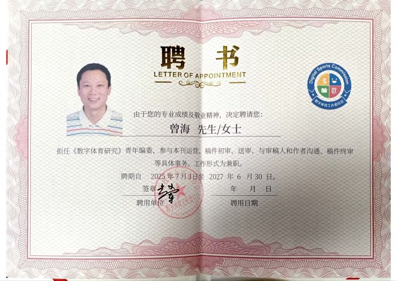 青年编委作为体育学科发展的新生力量,在推动学术创新与期刊转型中发挥着双重作用。以曾海教授为代表的青年编委团队,将通过参与选题策划、专题组稿和学术评审等核心工作,为《数字体育研究》提供专业智库支持。这一重要举措既实现了学术研究的代际传承,又为体育学科的创新发展注入了新动能。