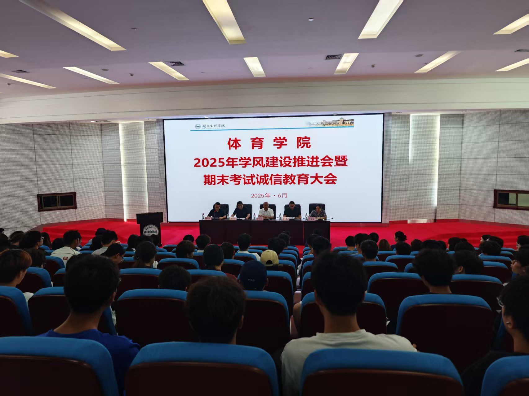 在图书馆三楼报告厅召开学风建设推进会暨期末考试诚信教育大会,院领导,体育教育和社会体育指导与管理两系主任、支部书记,全体辅导员、班主任,全体在校生参加会议。