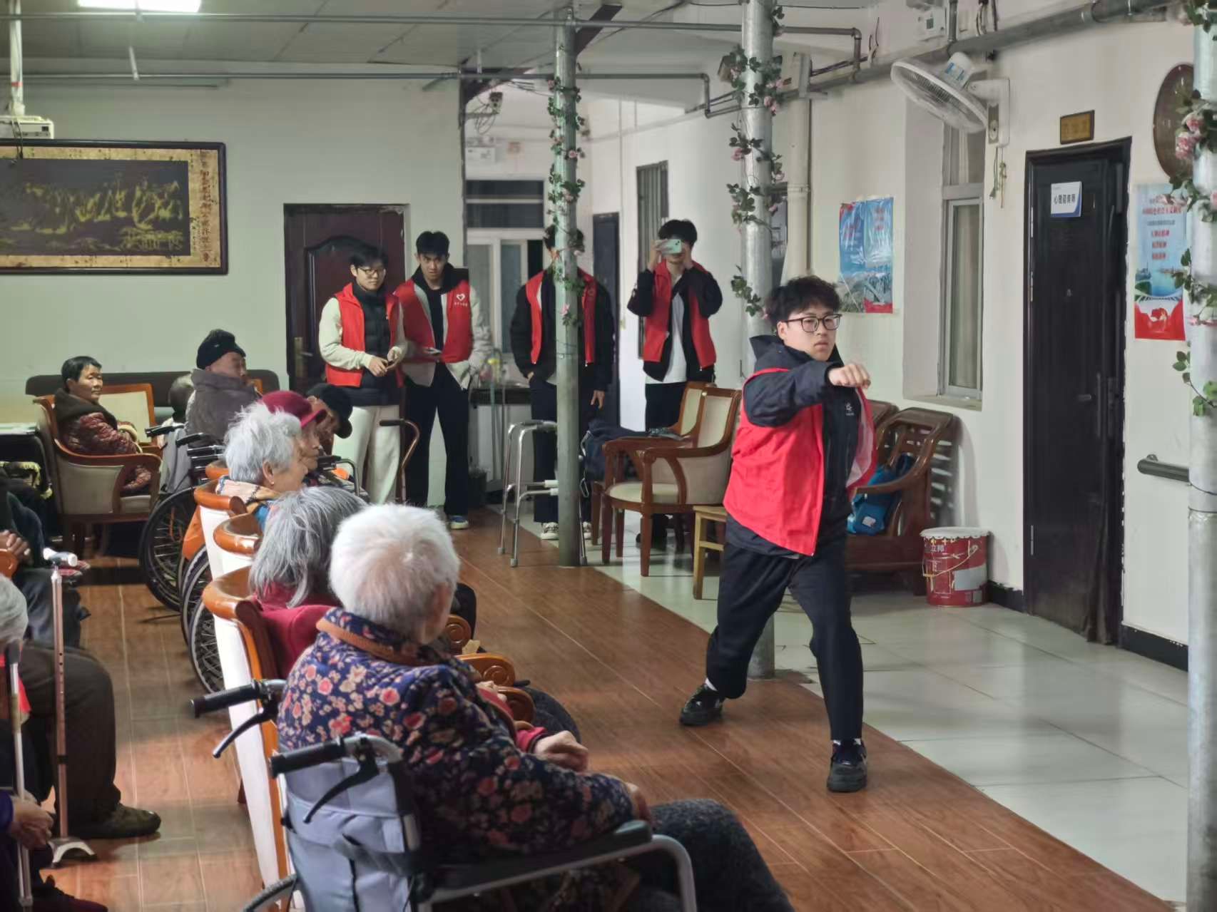 的一群青年志愿者来到这里,开展“青春暖夕阳”志愿服务活动,用真诚的陪伴和特有的专长,为老人们带去了一份别样的春日关怀。