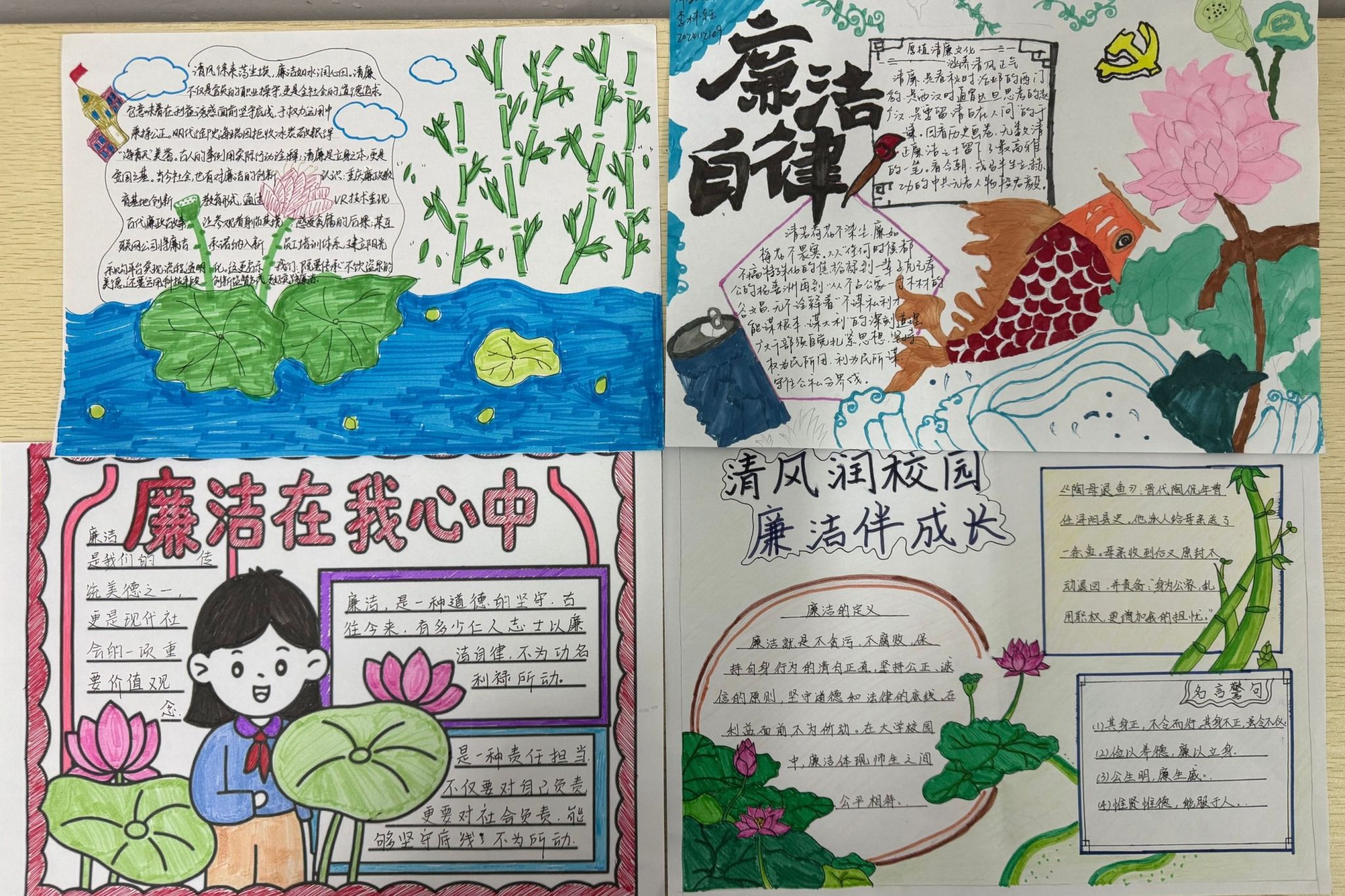 1.举办“清风润笔,廉洁绘心”廉洁教育作品征集活动。活动得到了学生的积极响应,共征集到书法、绘画、手抄报等各类作品近二十五件。同学们以自己的平时的生活与廉洁主题巧妙融合,创作出了一批思想性与艺术性兼备的优秀作品。学院对优秀作品进行了集中展示,用美的形式传递清廉之风,使师生在欣赏中受到潜移默化的教育。