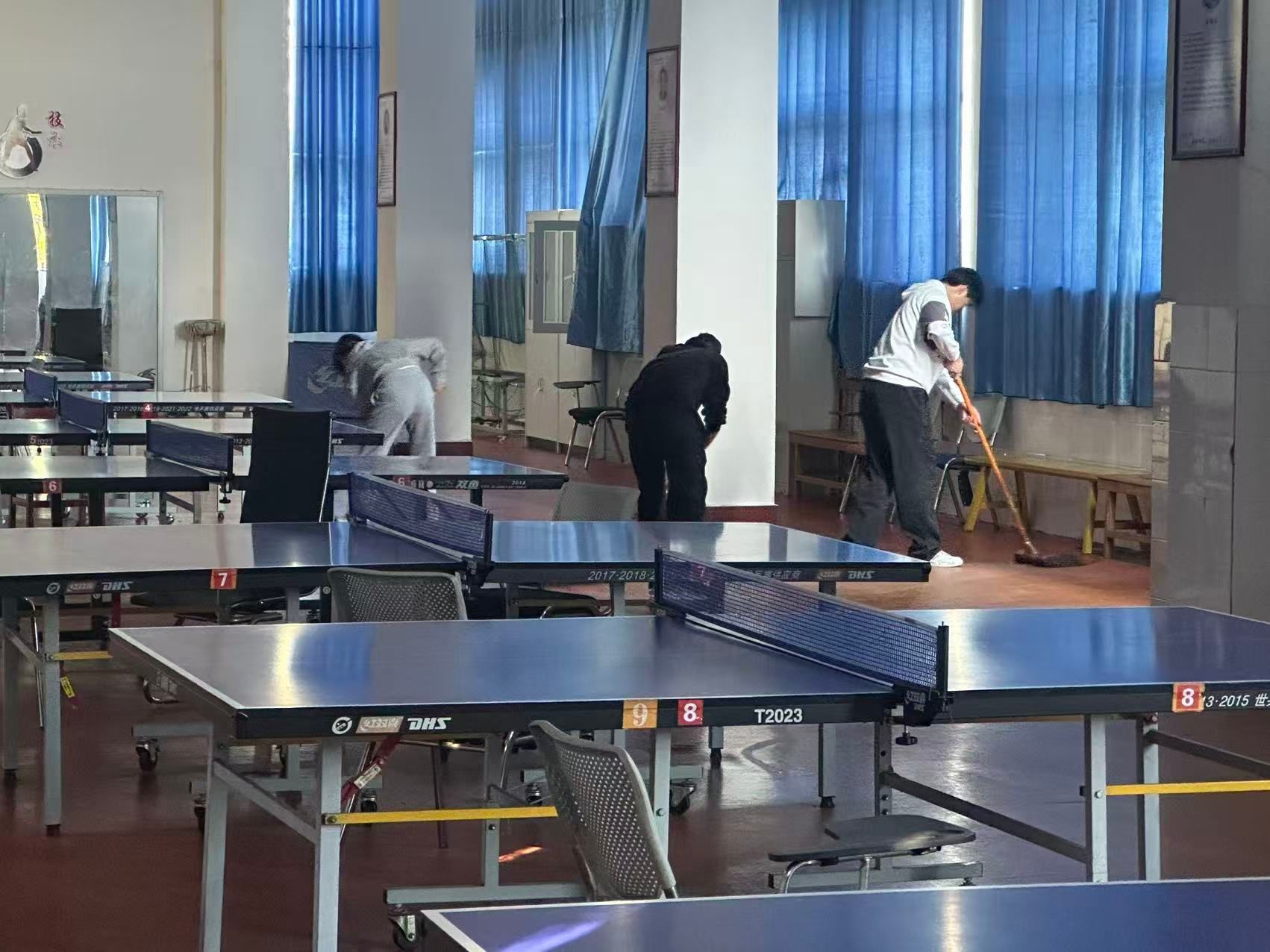 廉洁不仅是一种道德要求,更是一种脚踏实地的行动。为此,我们特别设计了实践环节,将廉洁教育与劳动教育、奉献精神相结合。组织“净场修身”志愿服务活动。学院党总支牵头,组织全体学生干部、入党积极分子和学生党员,对学院所属的全部运动场馆(包括健身房、体操馆、球类馆等)进行了一次彻底的清扫与整理。在此次行动中,同学们不畏脏、不怕累,用汗水涤荡场馆,以实际行动诠释了“一尘不染”的廉洁内涵。这场特殊的“廉洁行动”,不仅美化了学习训练环境,更锤炼了学生吃苦耐劳、甘于奉献的品格,强化了他们的公共服务意识和集体荣誉感。