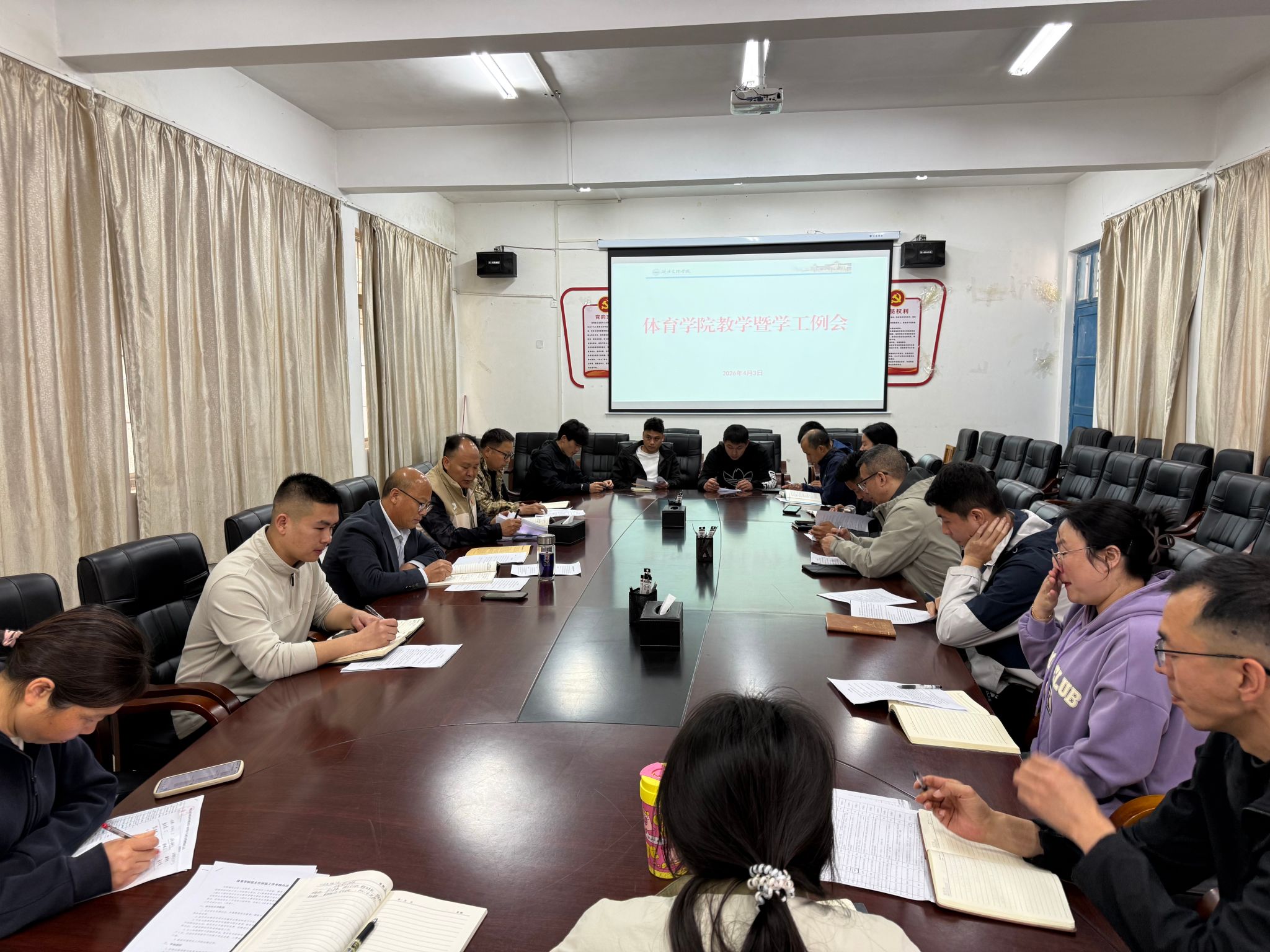 在学院会议室召开4月教学暨学工例会。会议由学院副院长吉玉良主持,学院班子成员、各系部主任及书记、全体班主任、教学办主任及辅导员参加会议。会议围绕全年级学业问题与日常管理工作展开深入研讨。
