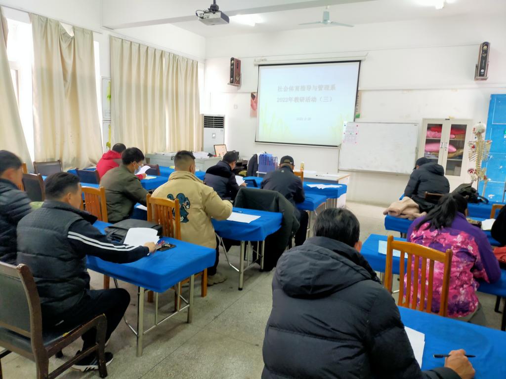 社会体育指导与管理系在S3-302教室开展“为学生办实事”活动暨2022年第三次教研活动。本次活动以提高人才培养质量为主题,着重研讨社会体育指导专业人才培养方案,对“毕业要求”部分作了细致的调整。为落实培养方案的各项要求,支部要求每位党员教师发挥带头作用,明确年度工作目标,认领工作任务。支部定期公布推进情况。为引导学生达成毕业要求,克服在校期间的各种困难,支部进一步推进党员联系学生等“六个一”工作。会后的社体教师在3#301教室与20级学生现场对接,建立起指导和帮扶关系。