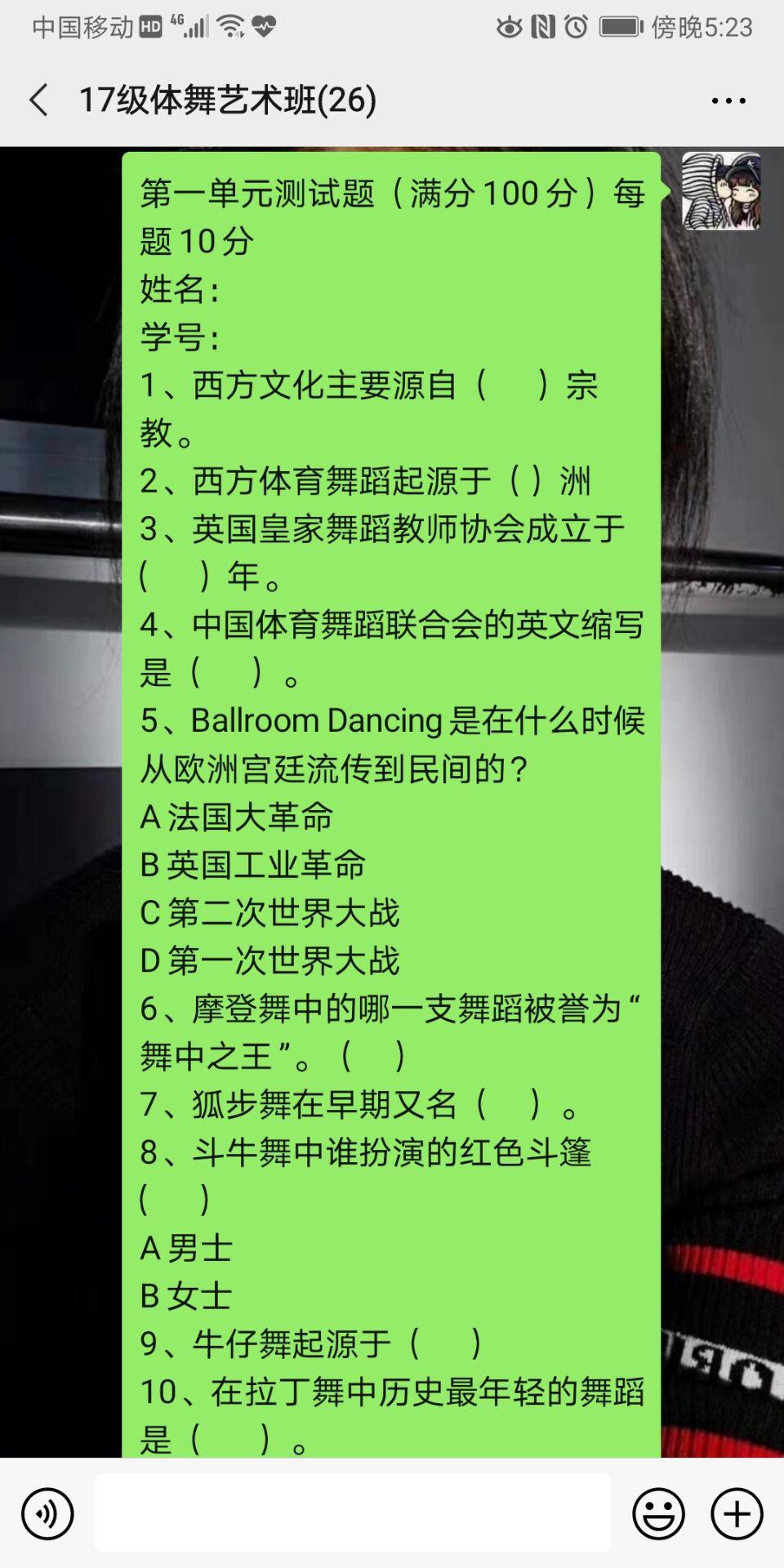 为提升同学们网课的学习效果,我及时调整了本学期的教学方案,根据体育舞蹈技术课学习特点,在没有舞伴的前提下,狠抓学生的理论知识和单人技术。为同学们拍摄了大量的课程段视频(这些段视频包括动作示范、细节讲解、易犯错误等),拍摄图片(用涂鸦的方式勾画出动作细节的要点),每周实行一考三测(一考是每周根据大家学习的理论知识以及技术知识出15道题目,检验同学们理论预习效果;三测是指每周三节课每节课开始5分钟给学生出3道抢答题);利用抖音、美拍、大学生慕课等多种平台寻找更专业的动作讲解,以便高质量完成技术讲解。