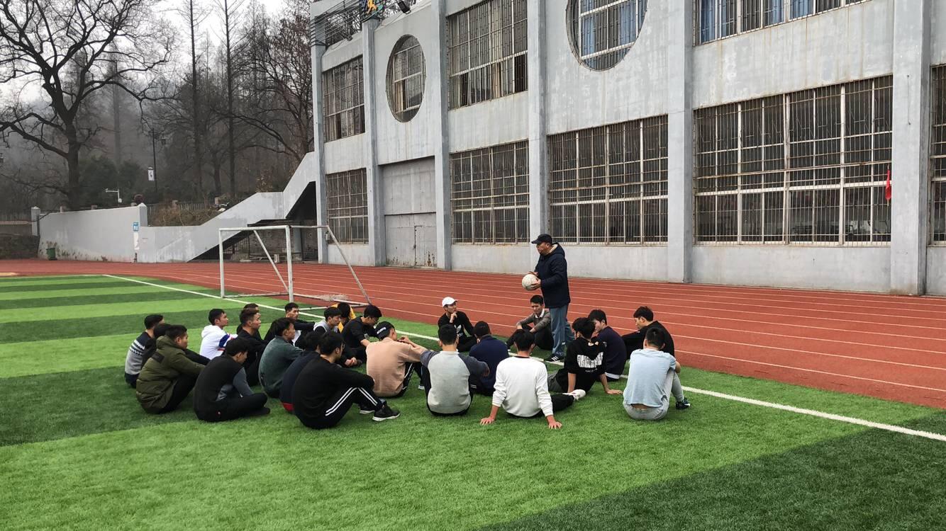 第一节课,田径场上李化雨老师组织足球班学生进行停、传、带等基础性技术教学和战术指导,李老师对学生说“同学们在理解足球技巧的同时,也要用心感受足球的乐趣,真正喜欢上这项运动,主动地提高自己的技术水平,寻找属于自己的‘招牌动作’”。他强调足球不能仅仅追求技艺的提升,也需要智慧和毅力,更需要团队精神。高文豹在为田径课的同学们测速,高老师对学生们说“田径不是纯靠天赋的,都是技术,不仅仅依靠加量苦练,更需要科学训练,还有就是在竞技比赛中的不断积累经验,突破自我。”用亚洲飞人苏炳添事迹勉励同学们不断超越、顽强拼搏,“通过自己的努力拼搏换来的人生就是奋斗”。