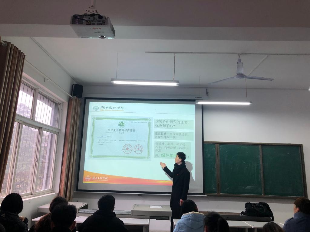 教室里,林万雷老师和同学们分享做公益的经历,已经在 “蚂蚁森林”上累积种树44棵的林老师说道,通过简单的公益行为使我更加懂得了“绿色,环保,奉献”的精神,“‘蚂蚁森林’上种树,看似虚拟,其实是真真切切的,每种下一棵树,便可帮沙漠地区种增加一点绿。” 更用“荷花定律”、“竹子定律”、“金蝉定律”三大定律讲述公益贵在坚持,需要持之以恒的决心,需要不断的坚持。