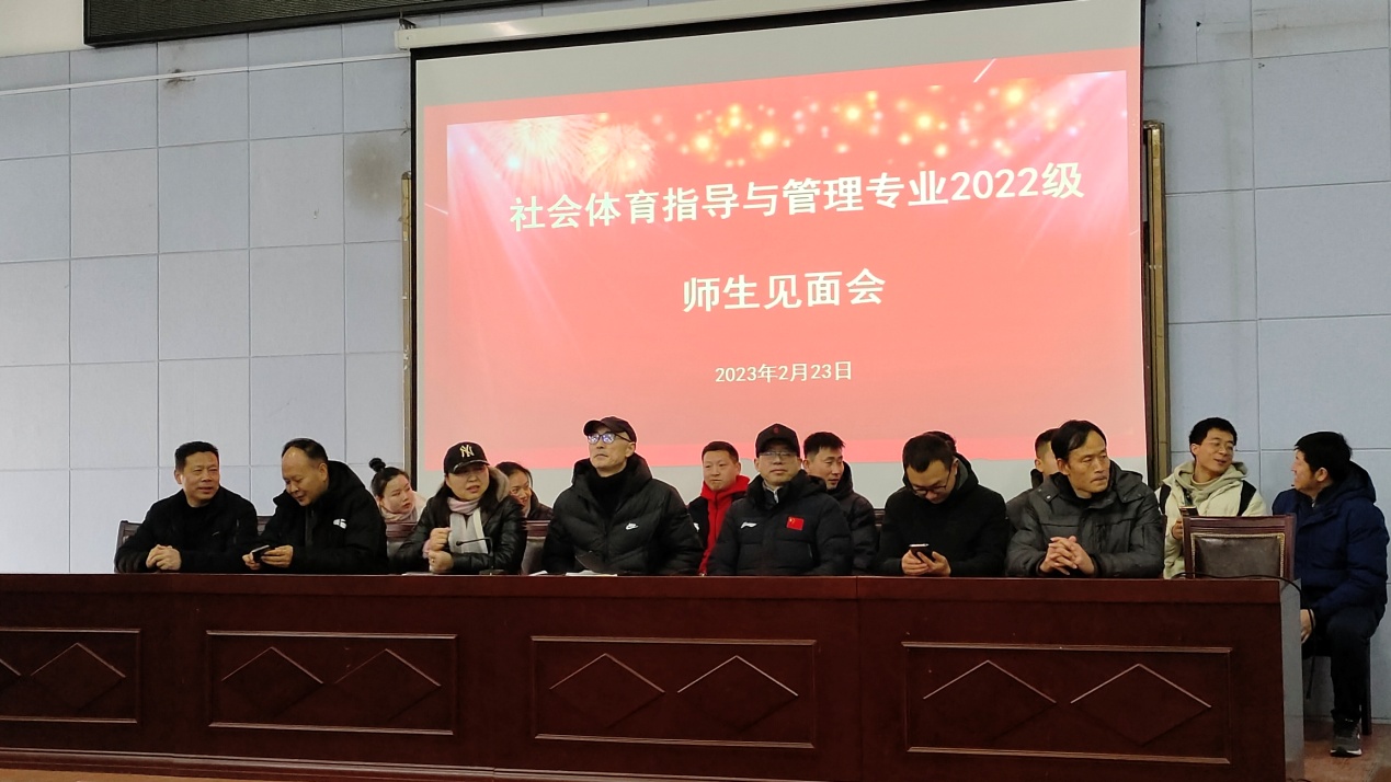 会议包括社会体育指导与管理专业与专任教师简介、全体学生向老师行拜师礼、牛丽丽主任致辞、学生代表范锦帅发言、何忠院长总结讲话、师生合影等6项议程。社会体育指导与管理系的师生见面会已连续召开4年,本次见面会与以往不同的是,介绍每一位老师的同时也宣读了该老师对2022级新生的寄语。一条条简短的寄语包含着老师对同学们的真挚关爱与殷切希望。会议现场同学们反响强烈,掌声不断!
