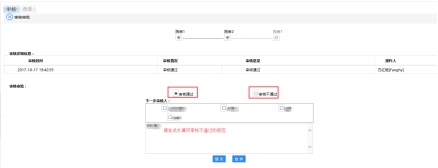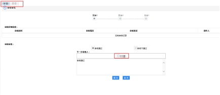 2)可在“审核”与“查看”中切换。审核不通过,请在方框内填写未通过的原因。审核通过,点“提交”按钮,由教务处进行审核、备案。注意:此步操作不要勾选审核人。