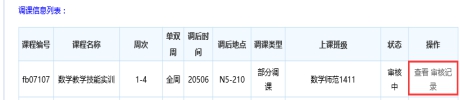 1)依次进入教务运行日常运行管理调课审核审批,点“审核”。如图: