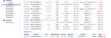3)在调课信息列表中,点操作栏中的“送审”按钮。