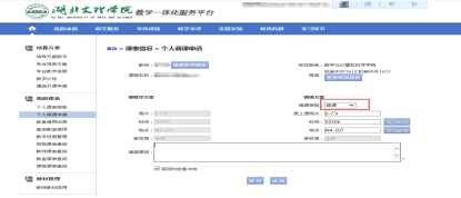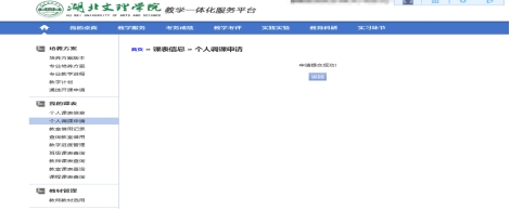 2)申请信息提交成功后,点“返回”按钮,进入个人调课申请界面。