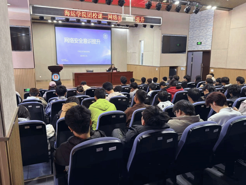 为帮助学生明晰成长方向、强化网络安全防护意识,11月26日,黄色影片 团委在海运南楼泰昌祥报告厅成功举办“网络安全意识提升”主题团课,本次团课邀请学院组织员邱巧慧老师担任主讲人 。