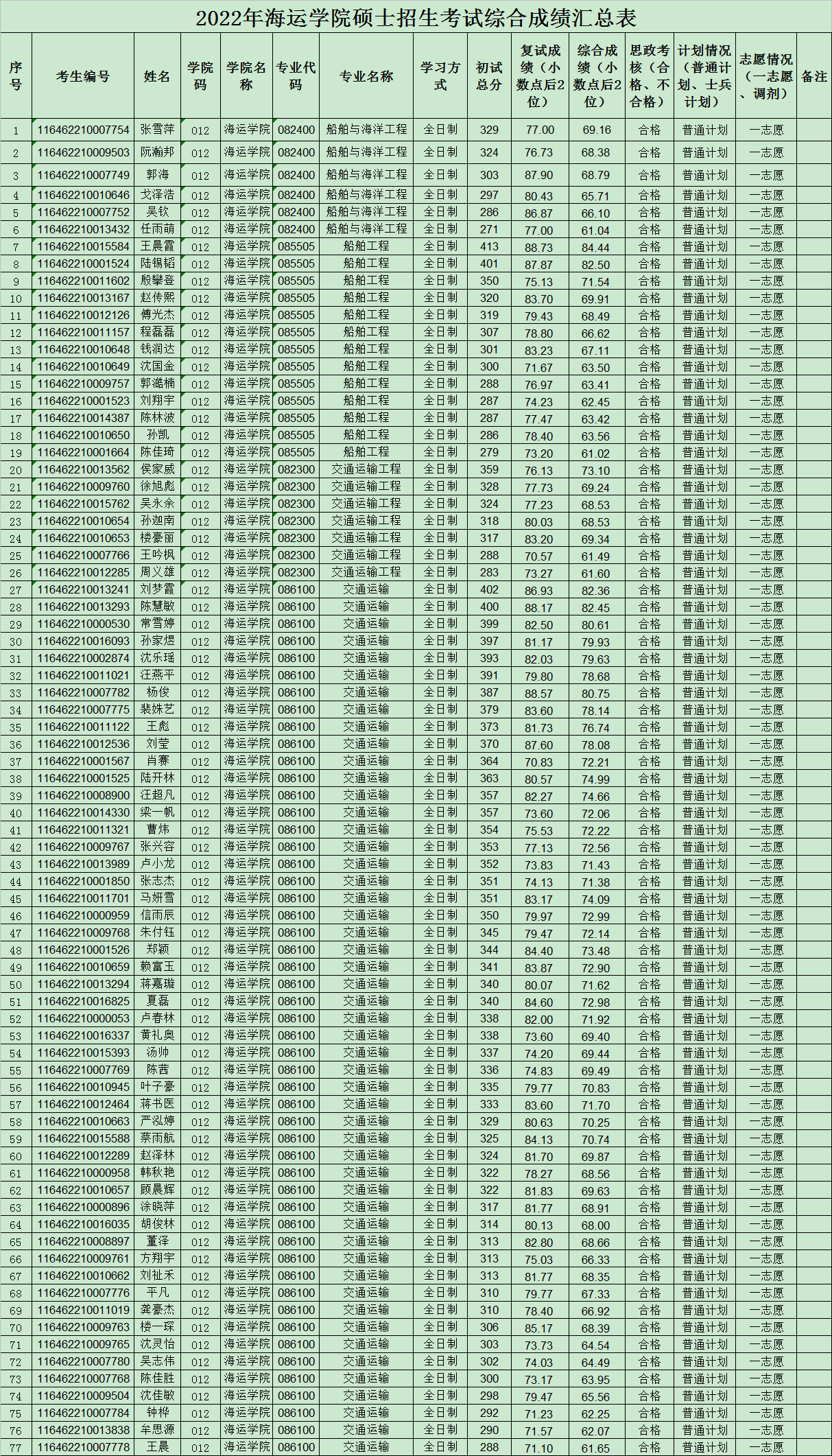 2022年黄色影片 硕士招生考试综合成绩汇总表发布版(0329)