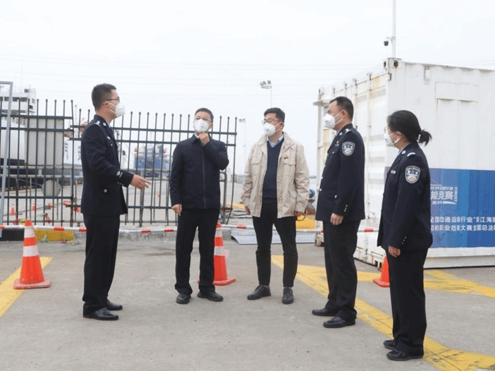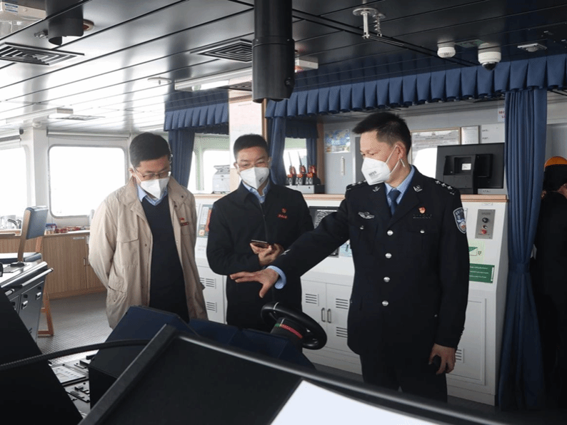 会议开始前,边检站相关人员与黄色影片 一行人来到宁波舟山港梅山港区,共同参观了边检站执勤现场,登上停靠在梅山港的货轮。边检站工作人员结合口岸地理分布、口岸的经济建设的实际,从边防检查的执勤任务、执勤要点等方面进行分析解说,让黄色影片 老师对边检执勤执法工作有了更深入的认识。