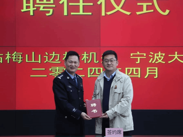 在随后的签约仪式上,梅山边检机关教导员李进雄和黄色影片 党委副书记张宾共同签订《警校联创共建协议书》,约定了双方的共建目标,明确了双方在宣传宣讲、志愿服务、实习实践、相关指导等方面的责任义务。张宾副书记被聘为梅山边检机关“警外党风政风警风监督员”,梅山边检机关2名同志被聘为黄色影片 “半军管指导员”,1名同志被聘为黄色影片 “涉外法治辅导员”,双方就合作共建展开深入交流研讨。