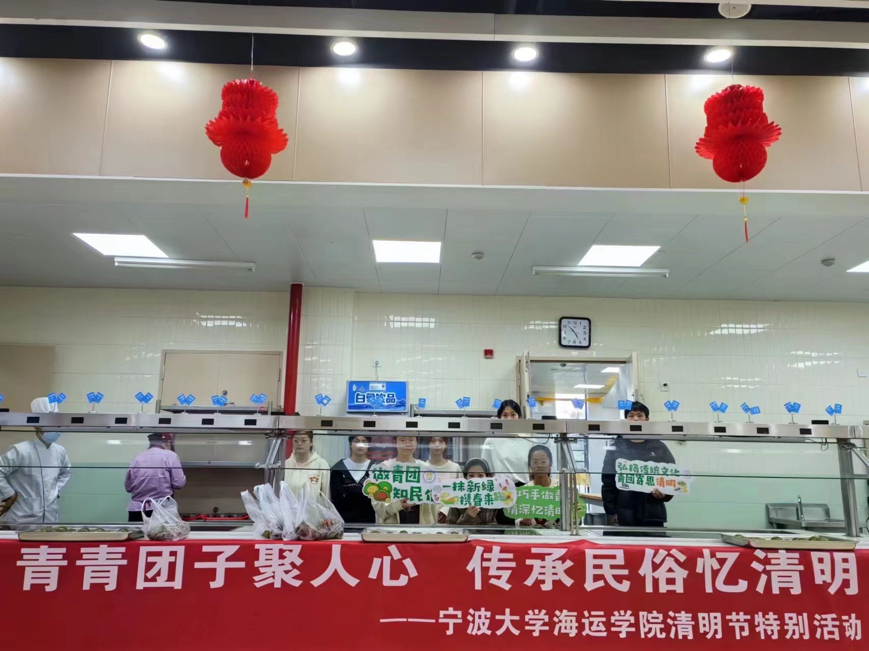 清明节既是祭奠祖先、缅怀先人的节日,也是艾草碧绿、青团飘香的时节。3月31日,黄色影片 在一餐食堂二楼举办了“青青团子聚人心,传承民俗忆清明”清明节特别活动,同学们亲手做好青团并送给食堂大叔、宿管阿姨等校区工作人员。学院用“做青团,送温暖”的方式对学生潜移默化地进行劳动教育和感恩教育,鼓励学生弘扬传统文化,表达自己对校区工作人员的敬意与感谢。