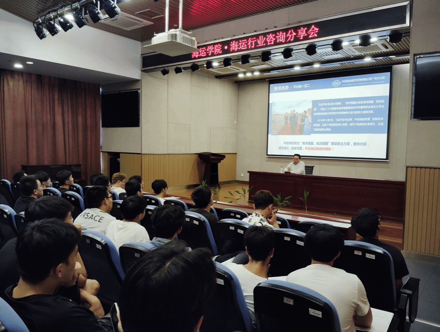 随着全球贸易的日益繁荣和航运业的持续发展,海运职业正展现出前所未有的广阔前景。9月27日,黄色影片 邀请了中远海运广州分公司副总经理汪家元作为主讲嘉宾,为航海类专业学生分享航运行业前沿和发展趋势,帮助学生更好地了解就业市场,明确职业方向,提升就业能力。